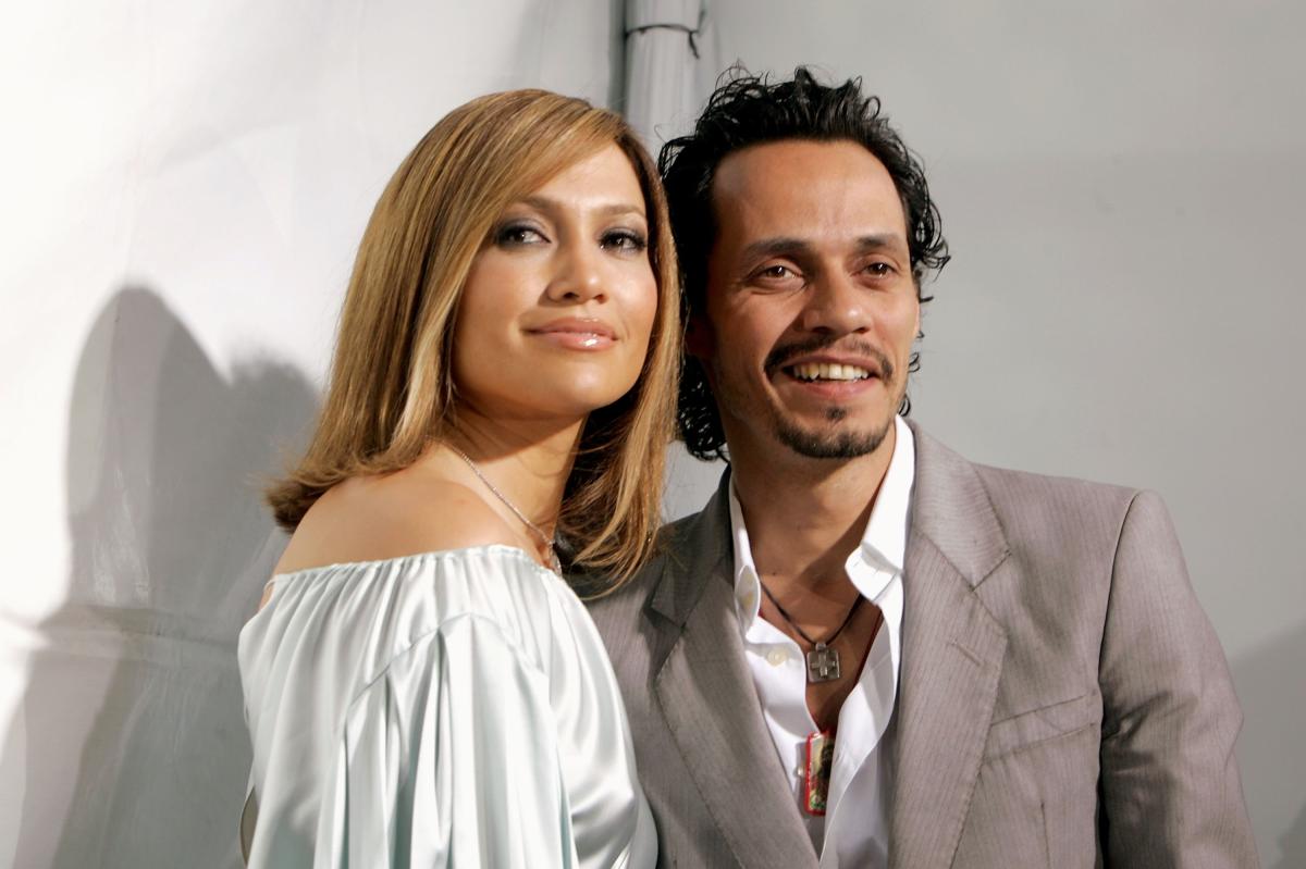 Lopez refletiu sobre seu doloroso divórcio de Marc Anthony, retratado aqui em 29 de abril de 2005, após 10 anos de casamento em 2014. Imagens Getty