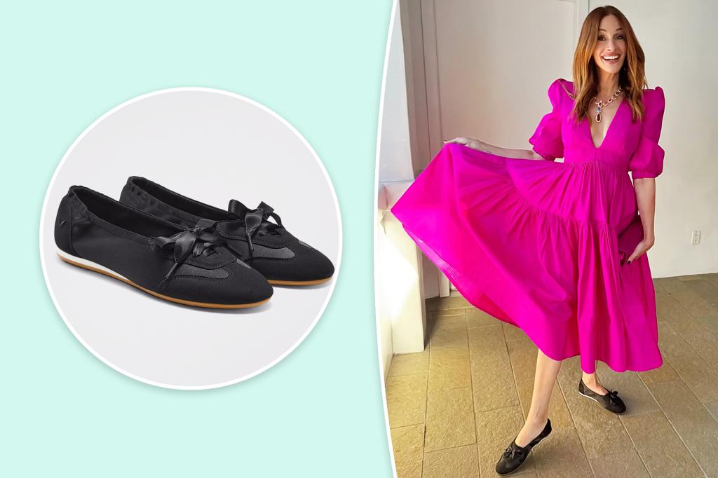 A estrela de “Erin Brockovich” trocou os saltos do tapete vermelho pelas sapatilhas de cetim inspiradas no balé assim que a sessão fotográfica terminou. Também não é a primeira vez que ela os usa; ela também trouxe sapatos confortáveis e fáceis de guardar para o Festival de Cinema de Veneza no mês passado.