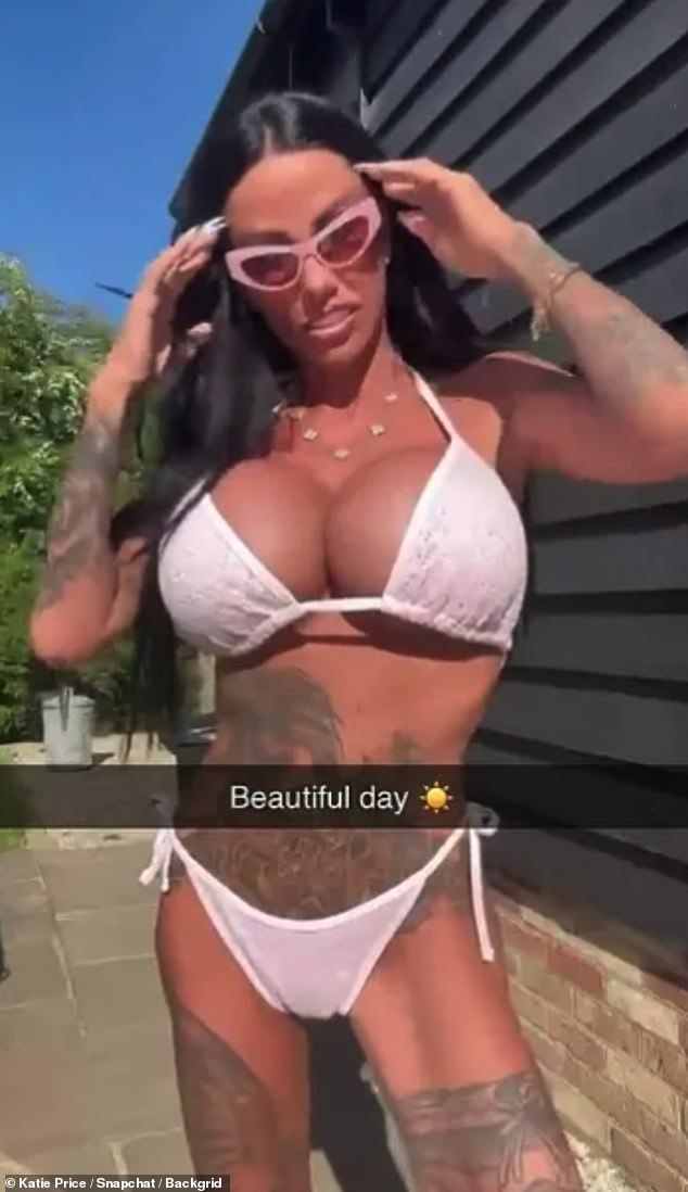 Katie Price deixou muito pouco para a imaginação ao vestir um biquíni minúsculo para uma postagem impressionante no Snapchat na segunda-feira.