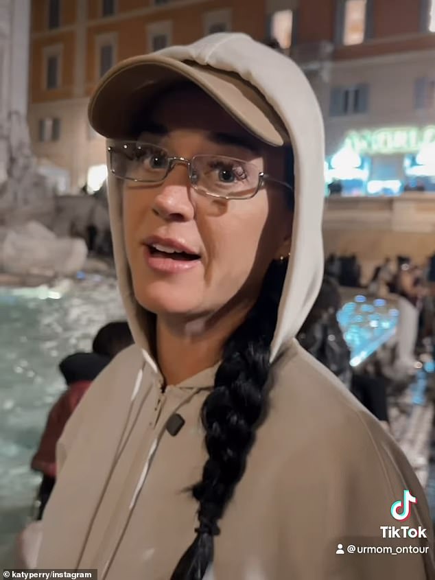 A hitmaker Dark Horse, 41, foi fotografada colocando seu cartão de crédito na icônica Fonte de Trevi enquanto visitava Roma, Itália, em um vídeo compartilhado em seu Instagram no domingo.