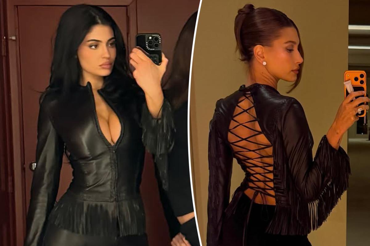 Sua jaqueta de couro com franjas foi roubada do armário da amiga Hailey Bieber. Kylie Jenner/Instagram