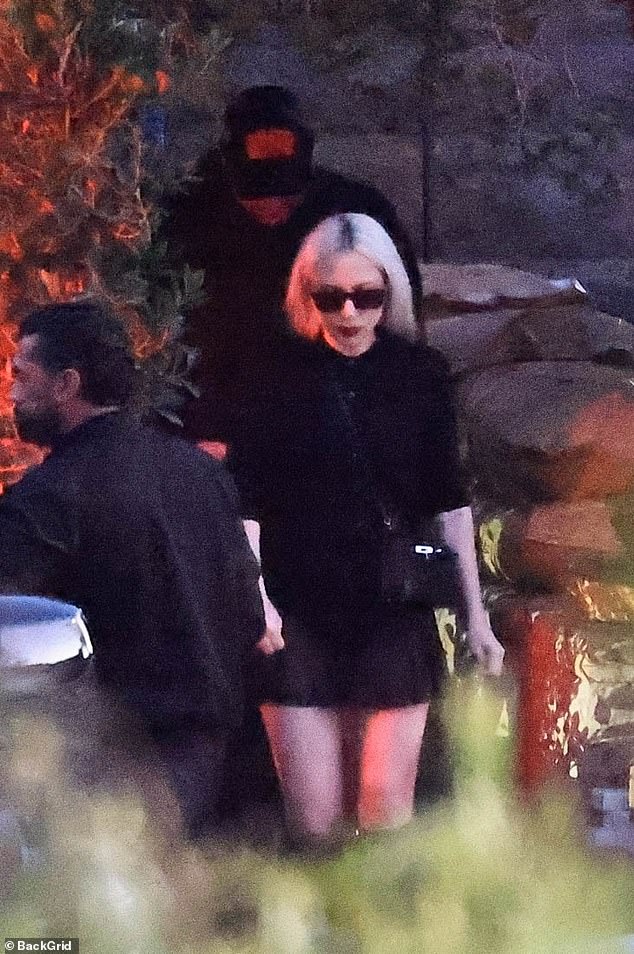 O casal foi visto saindo do exclusivo Soho House, exclusivo para membros, em West Hollywood, com a artista pop vestindo seu preto gótico característico, incluindo uma blusa de gola alta e minissaia.