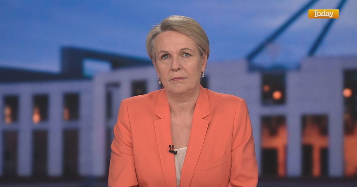 A ministra dos serviços sociais, Tanya Plibersek, no TODAY Show, anunciando um aumento de financiamento para 1800RESPECT 15 anos depois de lançar o serviço como parte do governo Gillard em 2010. (Nove)