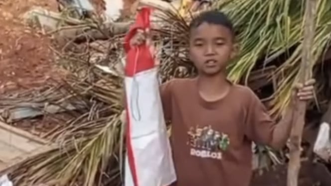 Patria, que estava entre as ruínas do deslizamento, mostrou então uma bandeira vermelha e branca. Ele disse que apenas a bandeira poderia ser salva. Este menino da escola primária em Pagaran Honas afirmou firmemente que apesar de sua casa e escola terem sido destruídas por inundações e deslizamentos de terra. No entanto, a bandeira vermelha e branca deve continuar a tremular ali.