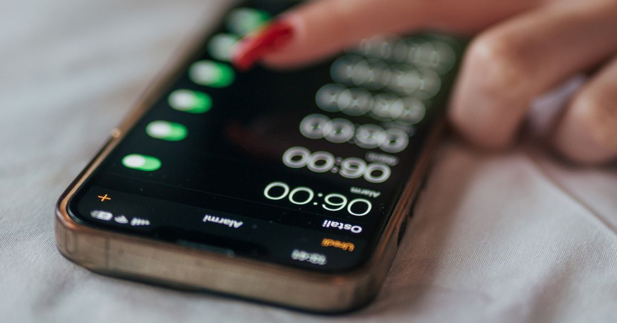Uma jovem coloca um alarme no telefone pela manhãA maioria dos smartphones atualizará seus relógios internos automaticamente quando terminar o horário de verão. (Getty)