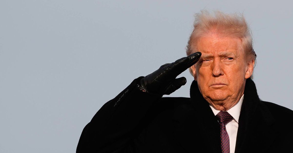 O presidente Donald Trump saúda enquanto uma equipe de transporte move a caixa de transferência com os restos mortais do intérprete civil Ayad Mansoor Sakat, que foi morto em um ataque na Síria. (AP)