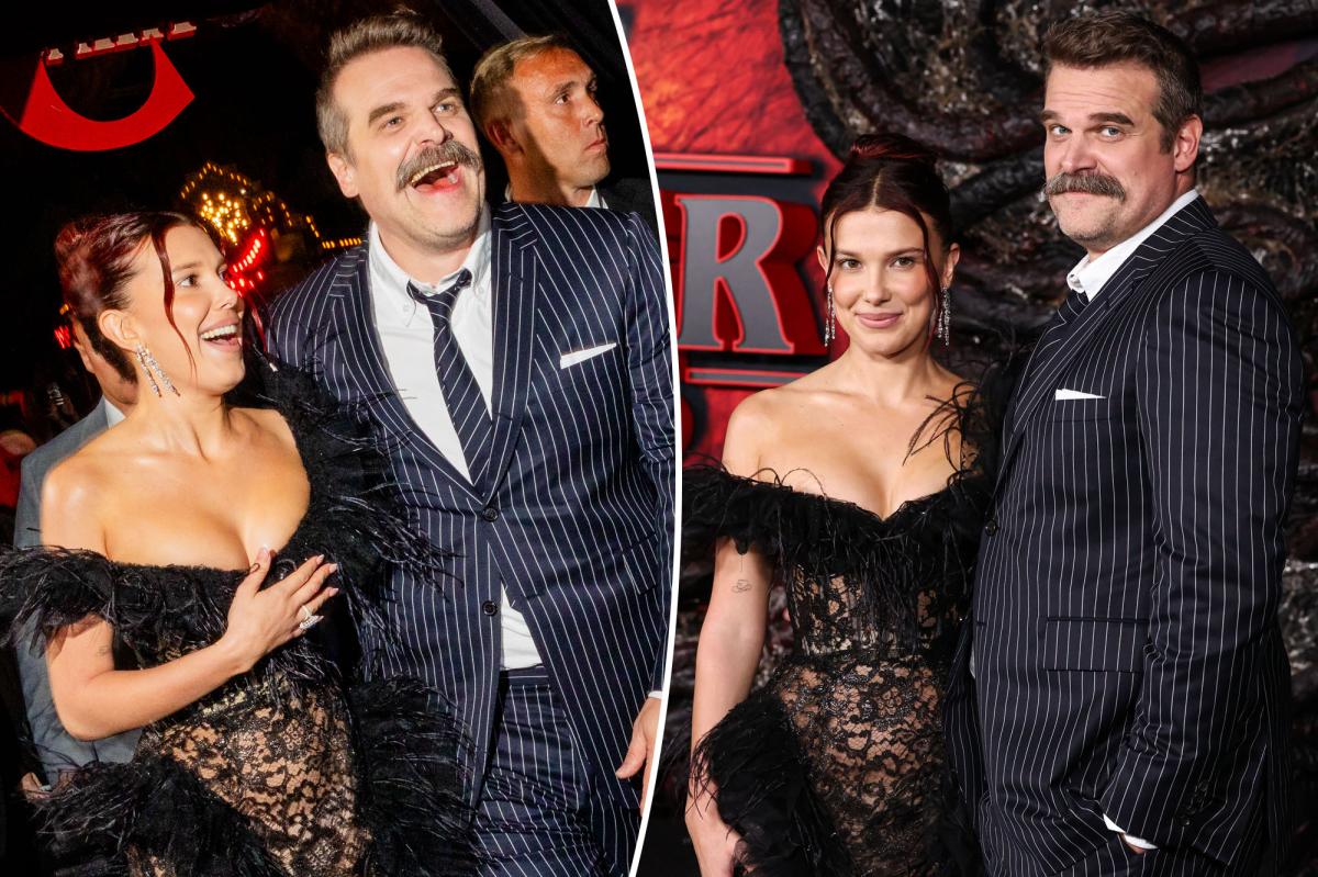 Millie Bobby Brown e David Harbor mostraram uma frente unida durante a estreia da 5ª temporada de “Stranger Things”. Getty Images para Netflix