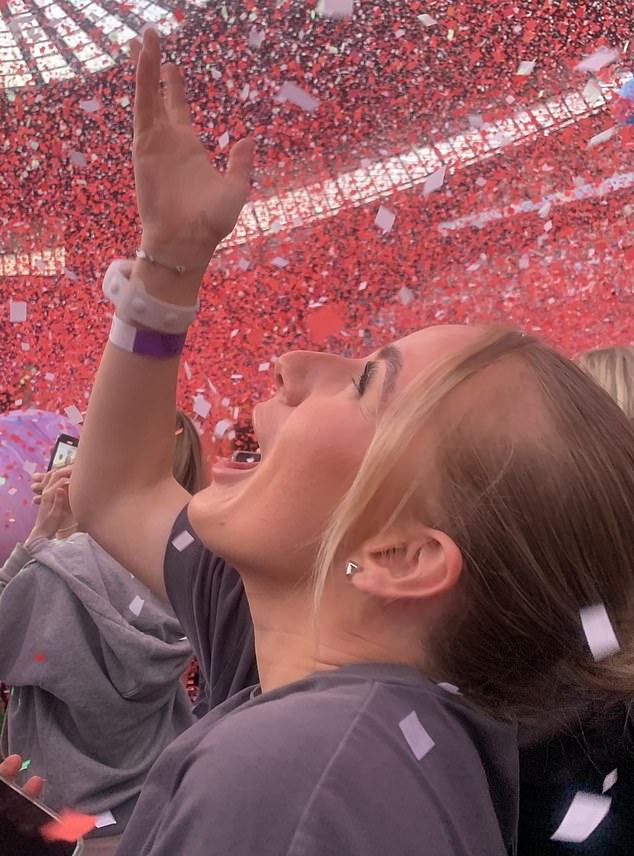 Lucy Harrison, 23, em uma imagem querida compartilhada por sua família, que eles emolduraram e levaram ao tribunal, onde foi exibida durante seu inquérito – foi tirada em um show do Coldplay no estádio Etihad em Manchester em 2023, ao qual ela compareceu com sua mãe