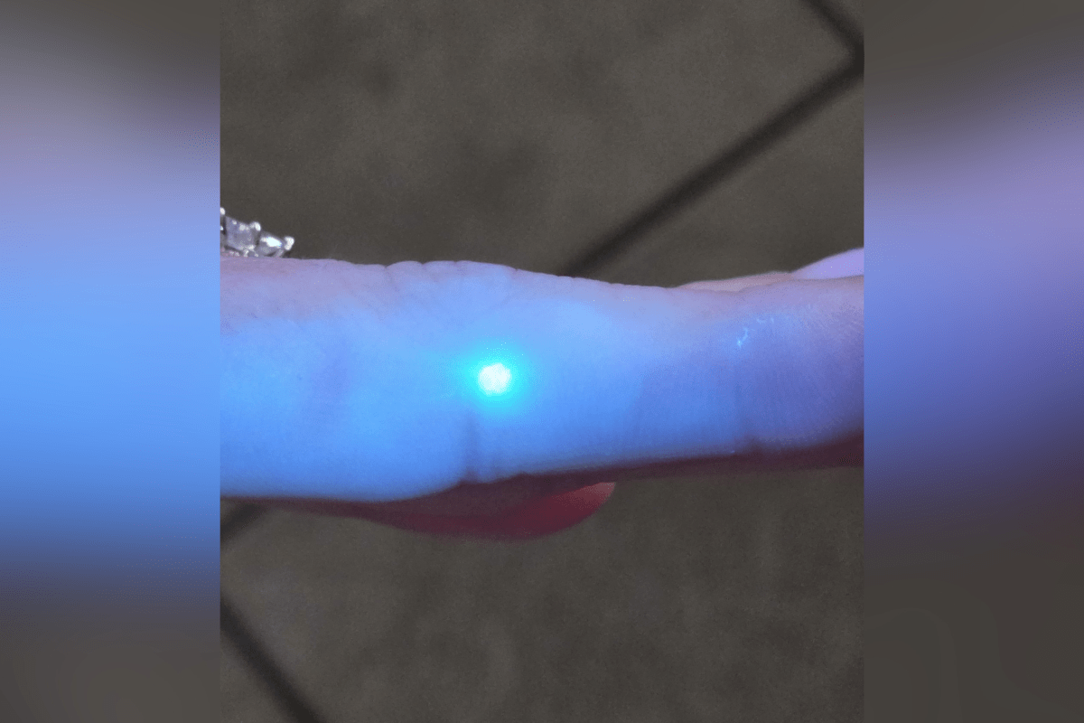 Um usuário de mídia social se tornou viral depois de compartilhar uma foto misteriosa da pele de sua noiva que parece brilhar em verde brilhante sob a luz ultravioleta – deixando milhares de comentaristas debatendo o que poderia estar causando isso.