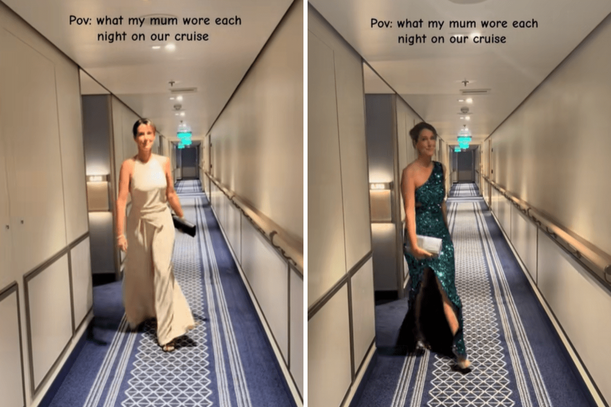 Uma mulher do Reino Unido capturou os looks noturnos de sua mãe a bordo de um navio de cruzeiro – e os internautas querem saber uma coisa.