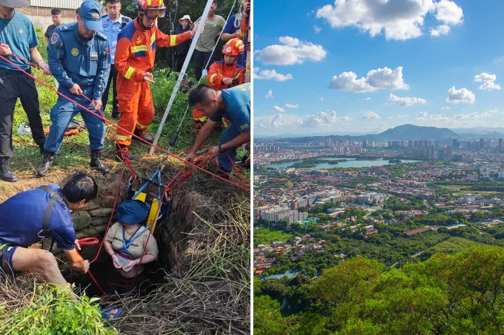 A caminhada, identificada por seu sobrenome Qin, 48 anos, estava passeando pela floresta de Quanzhuo, província de Fujian em 13 de setembro, quando ela caiu na boca do poço, informou o South China Morning Post.