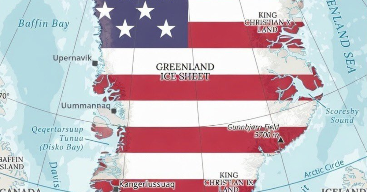 Katie Miller, esposa do conselheiro sênior da Casa Branca, Stephen Miller, postou no X um mapa da Groenlândia colorido com estrelas e listras e com a nota escrita “EM BREVE”.