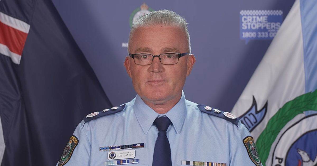 O comissário de polícia de NSW, Mal Lanyon, optou por estender a declaração estatal de terrorismo para proibir os protestos após o ataque em Bondi Beach. (Nove)