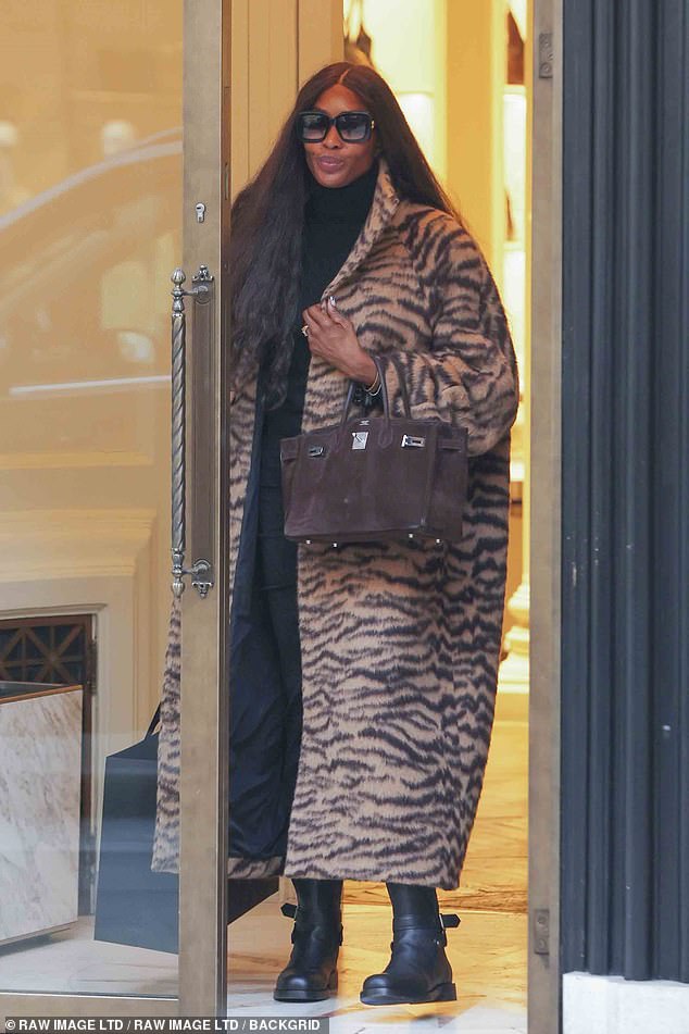Naomi Campbell se agasalhou enquanto desfrutava de uma viagem de compras de luxo na Gucci em Mayfair, Londres, na sexta-feira.