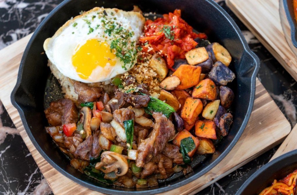 Procure itens do menu como Gogi Morning, uma porção de ovos Benedict com bulgogi bovino, cebola caramelizada, limão holandês, molho galbi e base de croissant (US$ 25), ou Gochujang Fried Chicken, frango desossado frito com açúcar em pó, coberto com cobertura de gochujang e coberto com gergelim e salsa (US$ 14), ao lado de outros sabores de fusão como Nori Pasta (US$ 26), Bone Marrow Cioppino (US$ 39) ou Frutos do Mar Massa Jjambbong ($ 29).