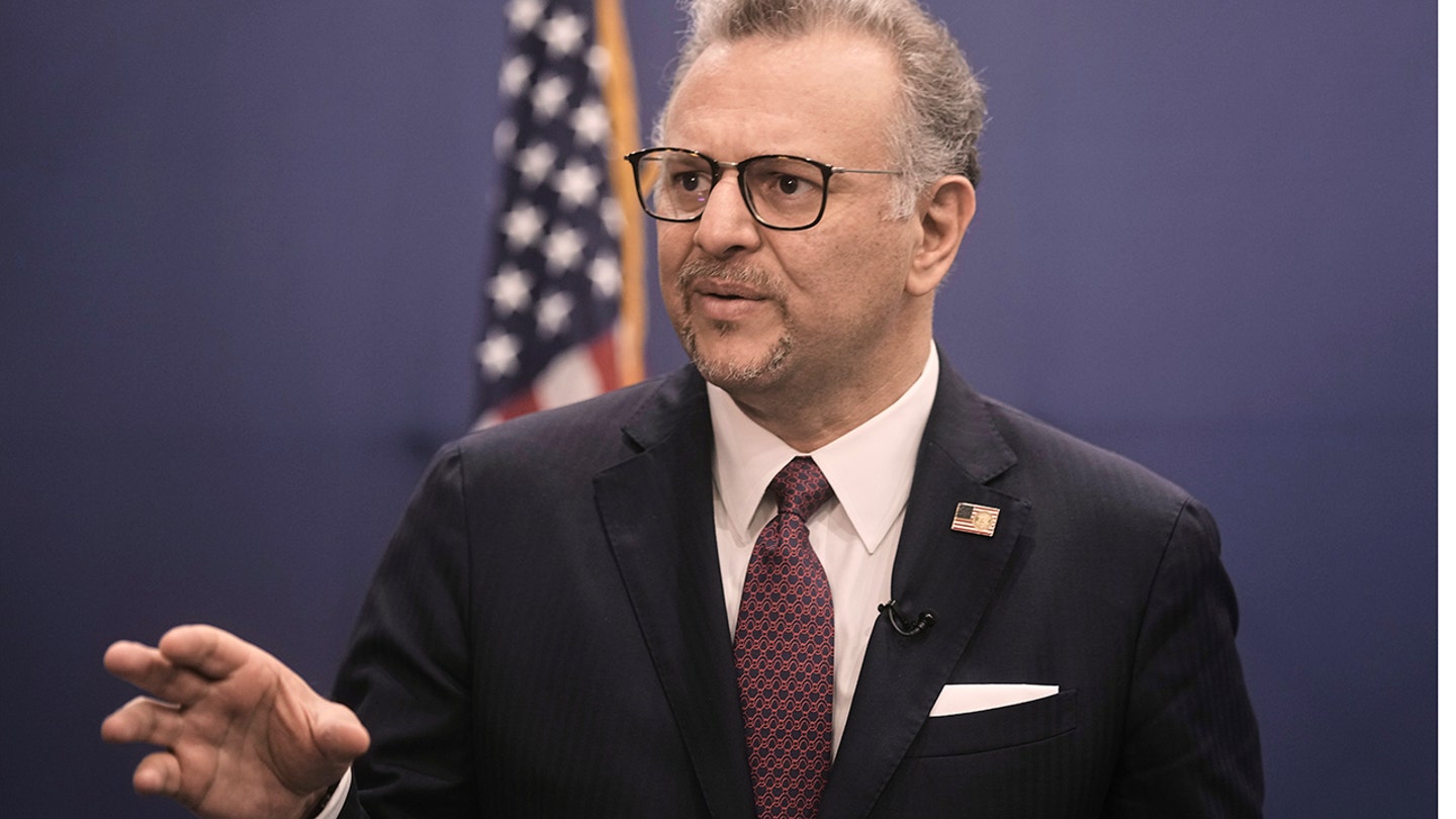 Massad Boulos, conselheiro sênior do presidente Donald Trump, fala durante uma entrevista à Associated Press na embaixada dos Estados Unidos no Cairo, Egito, segunda-feira, 3 de novembro de 2025. (Amr Nabil/Foto AP)