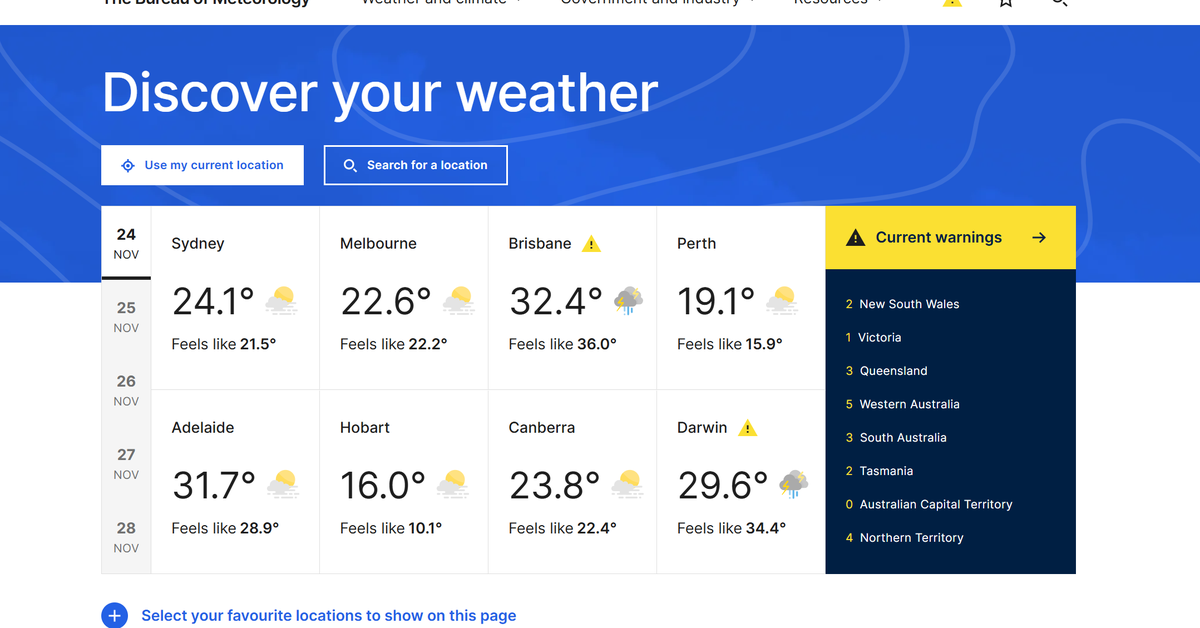 O site do Bureau of Meteorology, que é um dos sites mais visitados na Austrália, foi atualizado pela última vez durante o primeiro mandato de Kevin Rudd como primeiro-ministro e descobriu-se que tinha vulnerabilidades após uma intrusão cibernética em 2015.