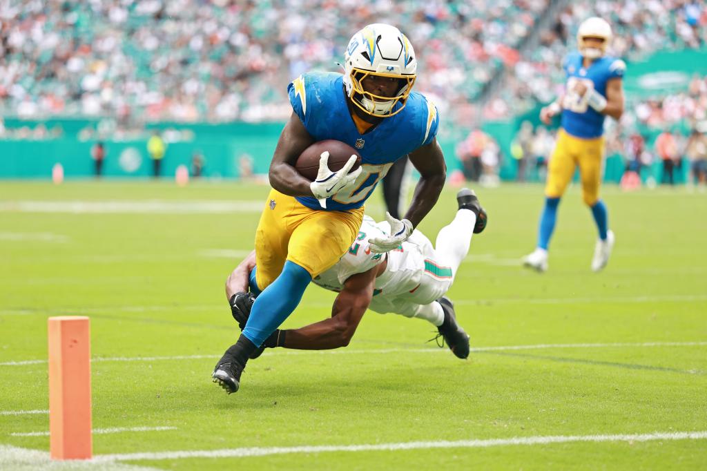 Se o running back do Chargers, Kimani Vidal, estiver disponível em sua liga, ele certamente será o pedido de isenção mais popular. Ele surpreendeu a todos ao superar o companheiro de equipe Hassan Haskins e conquistou os Dolphins para 124 jardas em 18 corridas. Ele também somou três recepções para 14 jardas e um touchdown, e os números deixaram todos babando nas possibilidades. Mas ele pode repeti-los? Parece improvável.