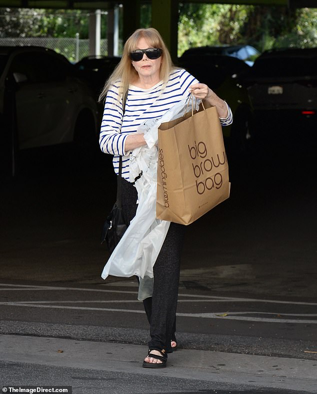 A estrela de 77 anos, que consolidou seu status de rainha do grito ao lado de Jamie Lee Curtis no Halloween II de 1981 como a enfermeira Karen Bailey, parecia alegre e radiante enquanto desfrutava de uma maratona de compras.