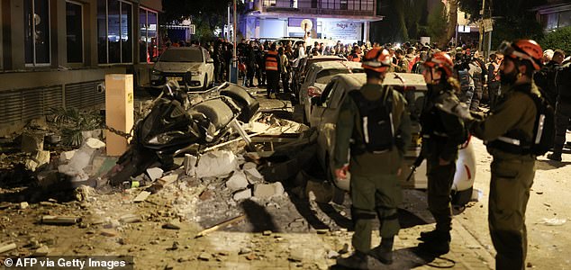 Socorristas inspecionam danos após ataque com míssil em Ramat Gan