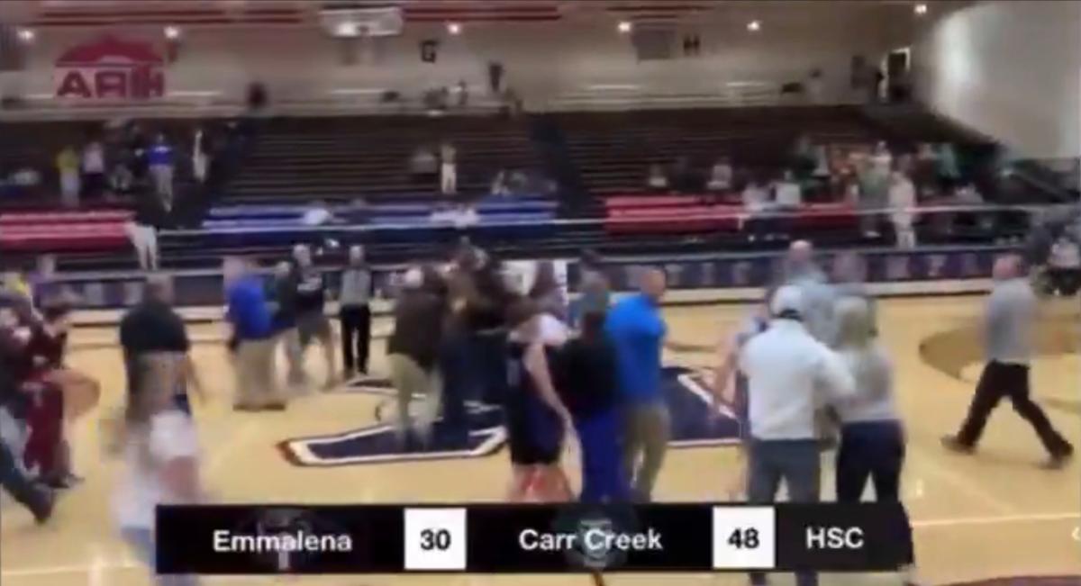 Carr Creek liderou Emmalena por 48-30 no quarto período, e no vídeo da competição, um jogador pode ser visto sendo empurrado diante das câmeras antes que um grupo de adultos imediatamente entrasse no jogo para separar a comoção.