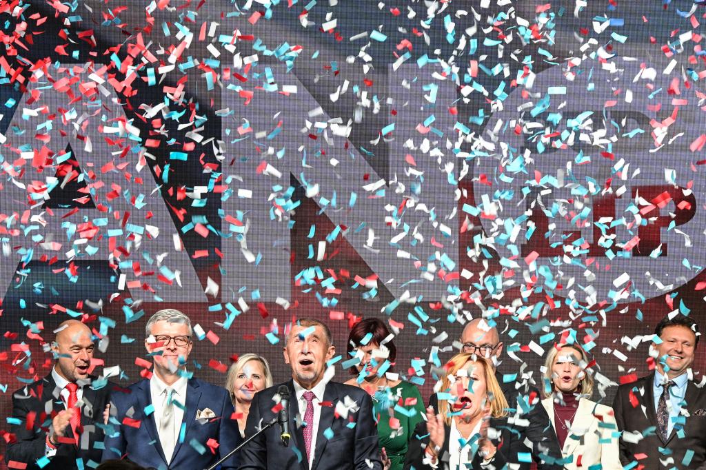 O partido ANO (centro) de Andrej Babiš conquistou o maior número de assentos nas eleições checas deste mês. AFP via Getty Images