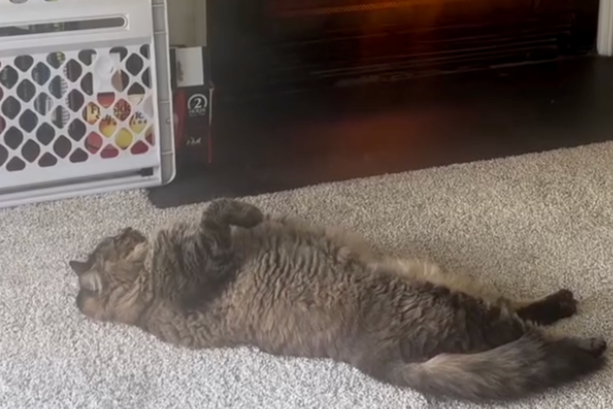 Lisa Darlington (@lisadarlington), 55, de Virginia Beach, Virgínia, compartilhou um vídeo de seu gato Maine Coon cinza de 2 anos, Eddie, deitado de costas em frente ao fogo. “Esse cara gritou comigo a manhã toda até que eu comecei um incêndio. Eu criei um monstro haha, (risos)”, ela legendou a filmagem no Threads, onde obteve mais de 25.500 curtidas e 471 repostagens.