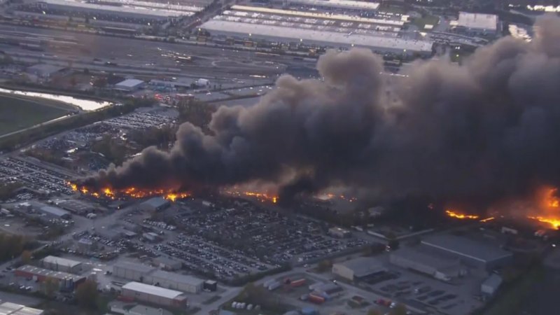 Cerca de 200 bombeiros e equipes de emergência e 50 caminhões foram chamados na terça-feira para combater o incêndio, que encheu o céu noturno com uma fumaça espessa e preta.