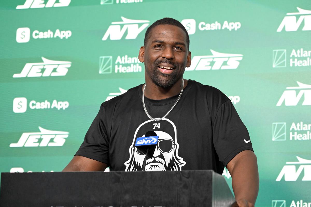 O coordenador defensivo dos Jets, Chris Harris, fala à mídia antes do treino em Florham Park, NJ Bill Kostroun/New York Post