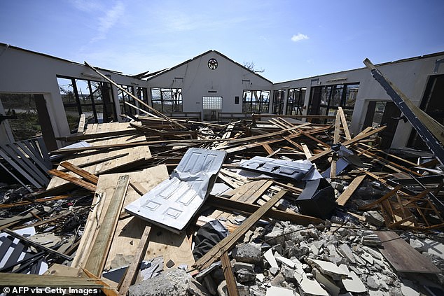 Alguns moradores disseram à BBC que não viram nenhum caminhão de ajuda na área até agora e descreveram que tiveram que comer todos os alimentos que encontraram nos escombros das estradas da cidade costeira, quase 150 quilômetros (93 milhas) a oeste da capital, Kingston. Na foto: A destruída Igreja Adventista do Sétimo Dia de Whitehouse