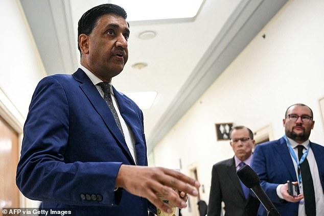 O representante dos EUA Ro Khanna, democrata da Califórnia, fala aos repórteres antes de entrar em um depoimento virtual a portas fechadas do Comitê de Supervisão da Câmara com Ghislaine Maxwell no Capitólio em Washington, DC, em 9 de fevereiro