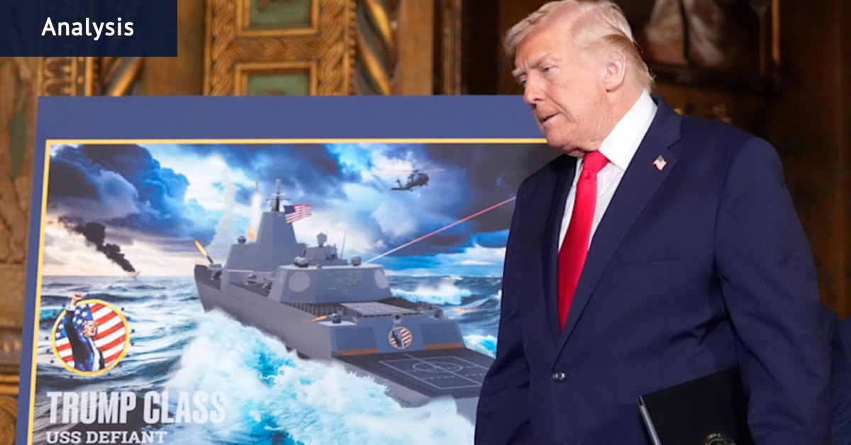 O presidente Donald Trump na semana passada depois de anunciar uma nova classe de navio de guerra – com o seu próprio nome.