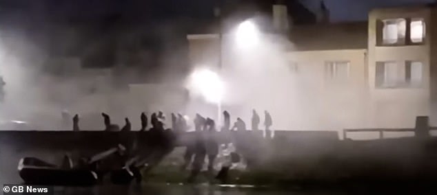 A polícia disparou gás lacrimogêneo contra os migrantes, que podem ser ouvidos gritando no vídeo compartilhado pelo GB News