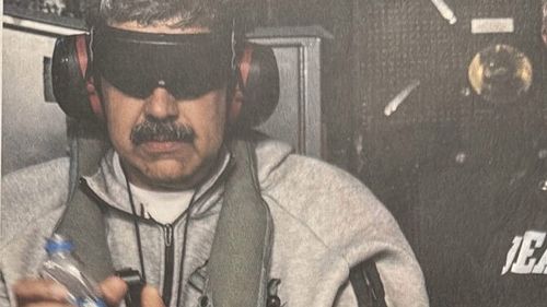Nicolas Maduro a bordo do USS Iwo Jima, em fotografia publicada pelo presidente dos EUA, Donald Trump. (Verdade Social)