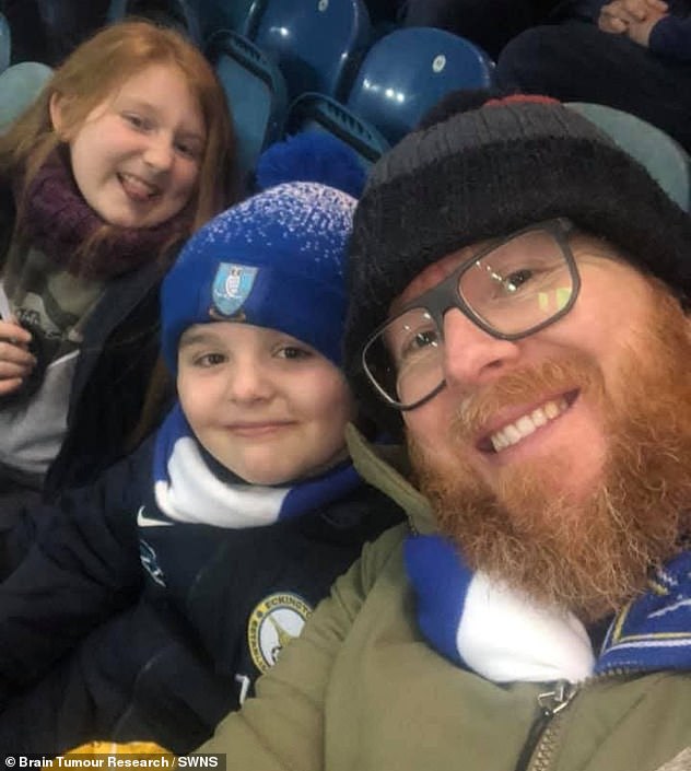 Após seu diagnóstico de glioblastomia, ele foi informado de que tinha 12 a 18 meses para morar. Os pacientes geralmente sofrem cirurgia para remover o máximo possível do tumor. Foto, Jamie com a filha Ava e o filho Harry em uma partida de Sheffield Wednesday