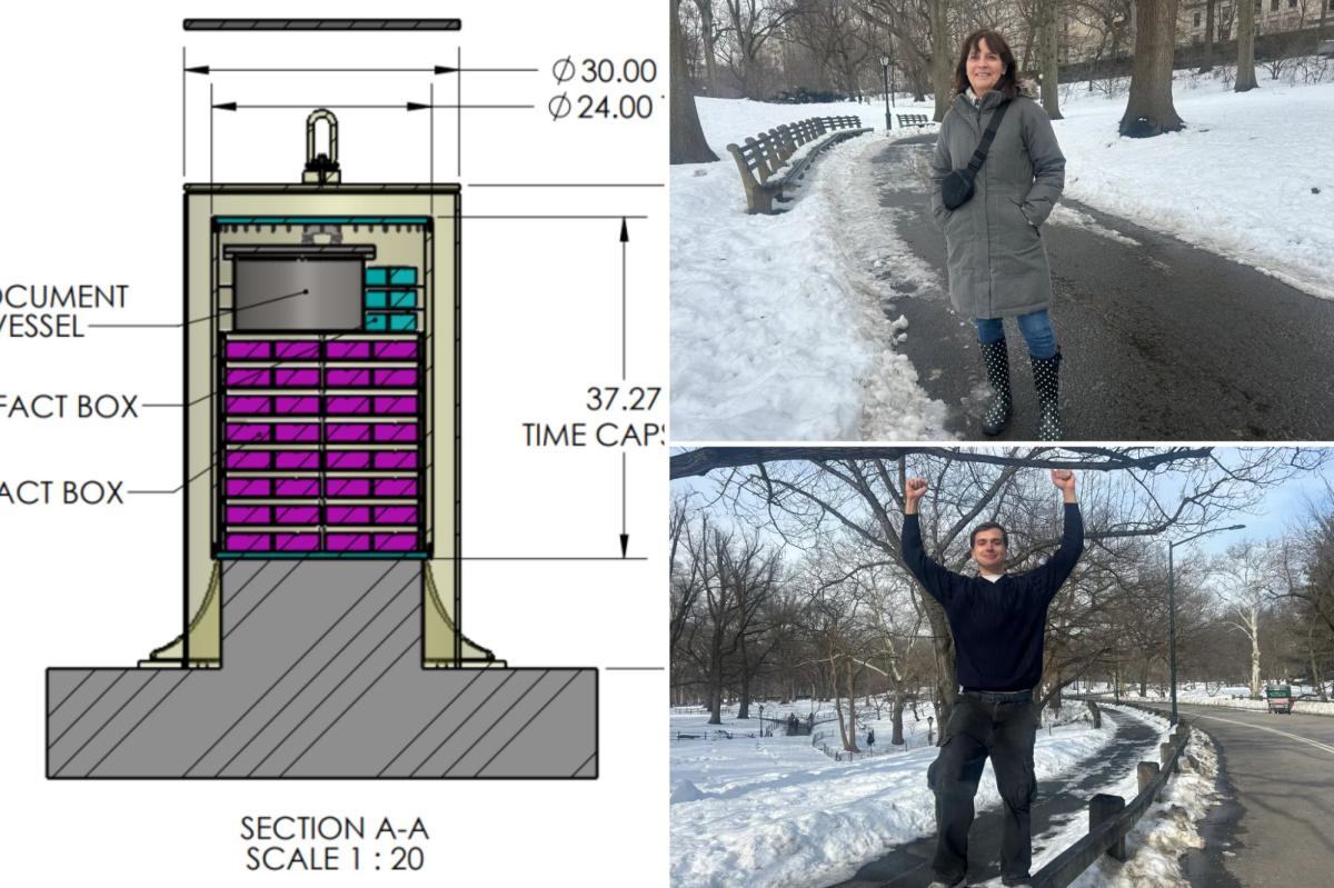 Stephen e Vera Schlesinger sugeriram que valeria a pena incluir uma imagem do Edifício JP Morgan na cápsula do tempo. Greg Carlton/NY Post