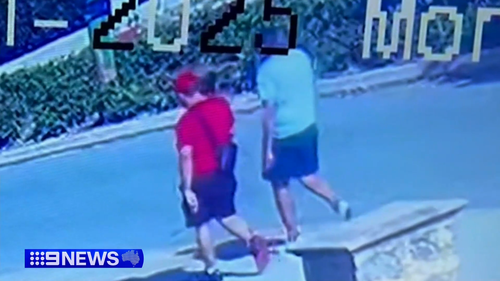 Câmeras de segurança capturaram três homens chegando em sua casa em The Vines pouco depois das 15h30. (9Notícias)