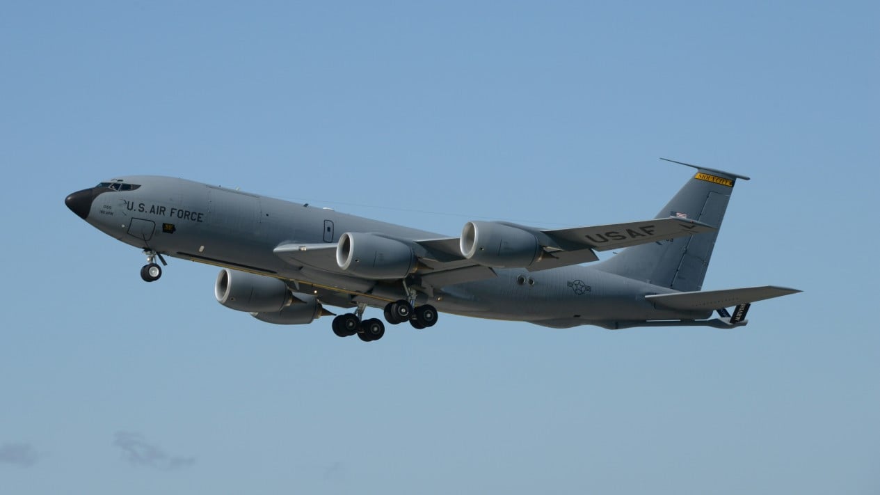 O navio-tanque KC-135 foi enviado para o mercado de petróleo e gás e foi produzido pelo Boeing em 1950-an hingga awal 1960-an. Pesawat ini telah lama menjadi tulang punggung armada pengisian bahan bakar udara milite AS e dan memainkan peran penting dalam memungkinkan pesawat tempur menjalankan misi jarak jauh tanpa perlu mendarat untuk mengisi bahan bakar.