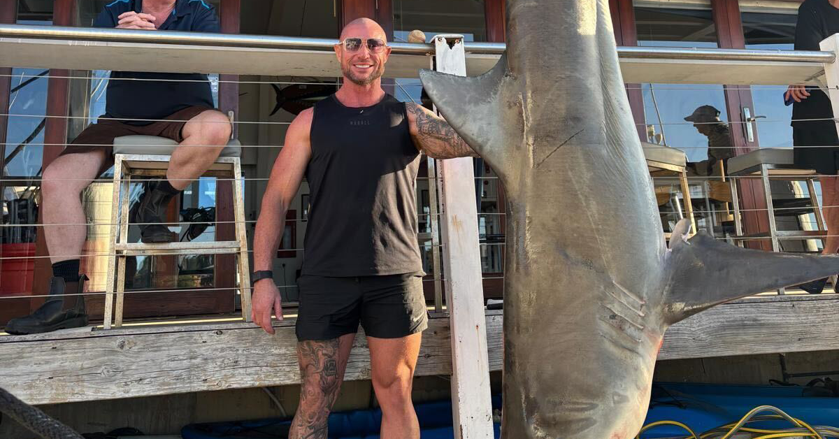 O tubarão pesava cerca de 150kg. (Instagram.com/chris.allchin)