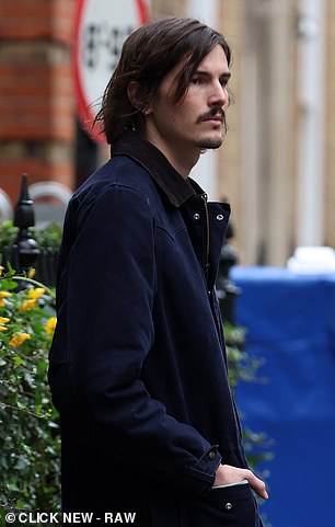 O ator estava de volta ao trabalho em uma rua molhada e ventosa de Londres enquanto o diretor Guy Ritchie filmava uma sequência externa para a próxima segunda temporada de seu seriado de sucesso.