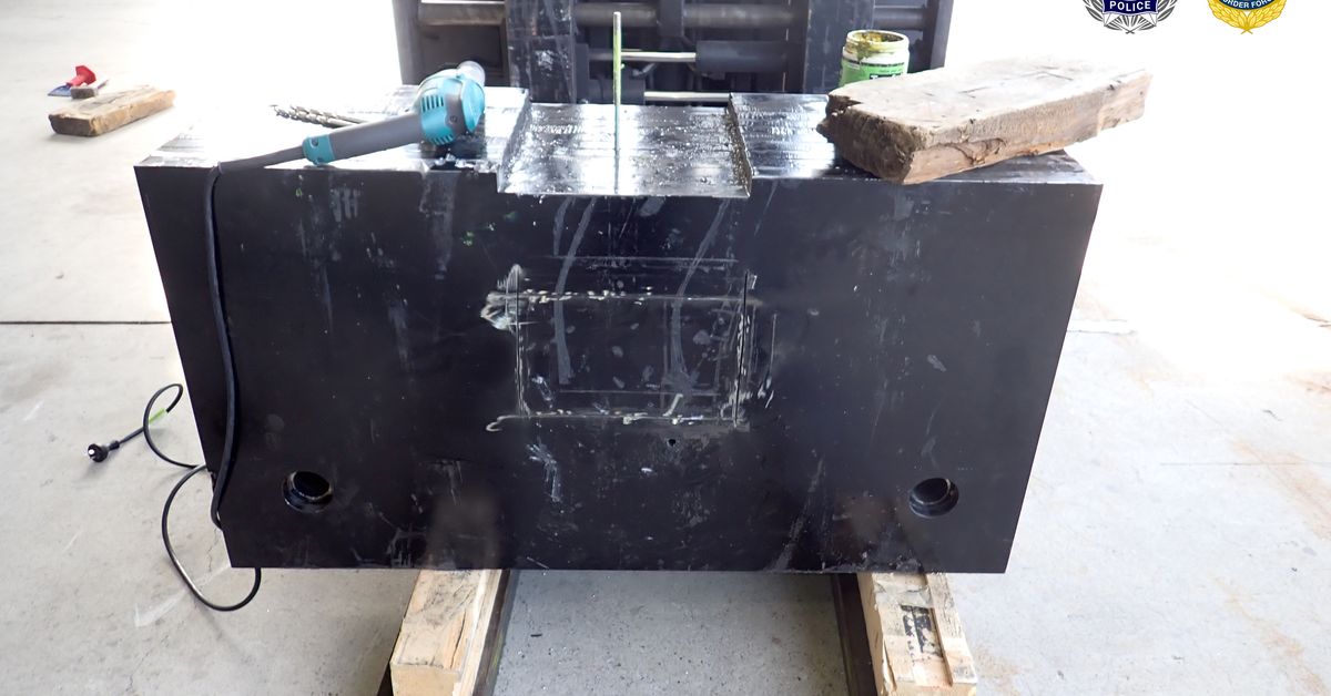 Um exame forense revelou que o contrapeso continha 46 pacotes de um quilo de metanfetamina.