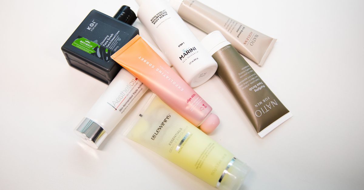 A maioria dos produtos eram esfoliantes e incluem o popular esfoliante facial de romã Alya Skin, o gel de polimento facial semanal esfoliante suave essencial do Dr LeWinn e o esfoliante de renovação da pele sem idade Natio.
