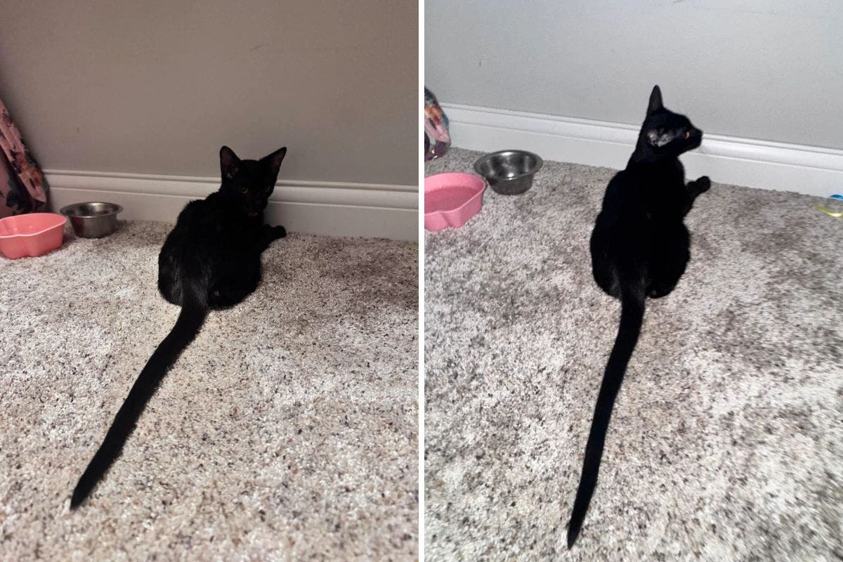 Uma imagem da cauda anormalmente longa de um gato de estimação rapidamente se tornou viral no Reddit, enquanto as pessoas questionavam se a cauda do felino de 6 meses parecia real.