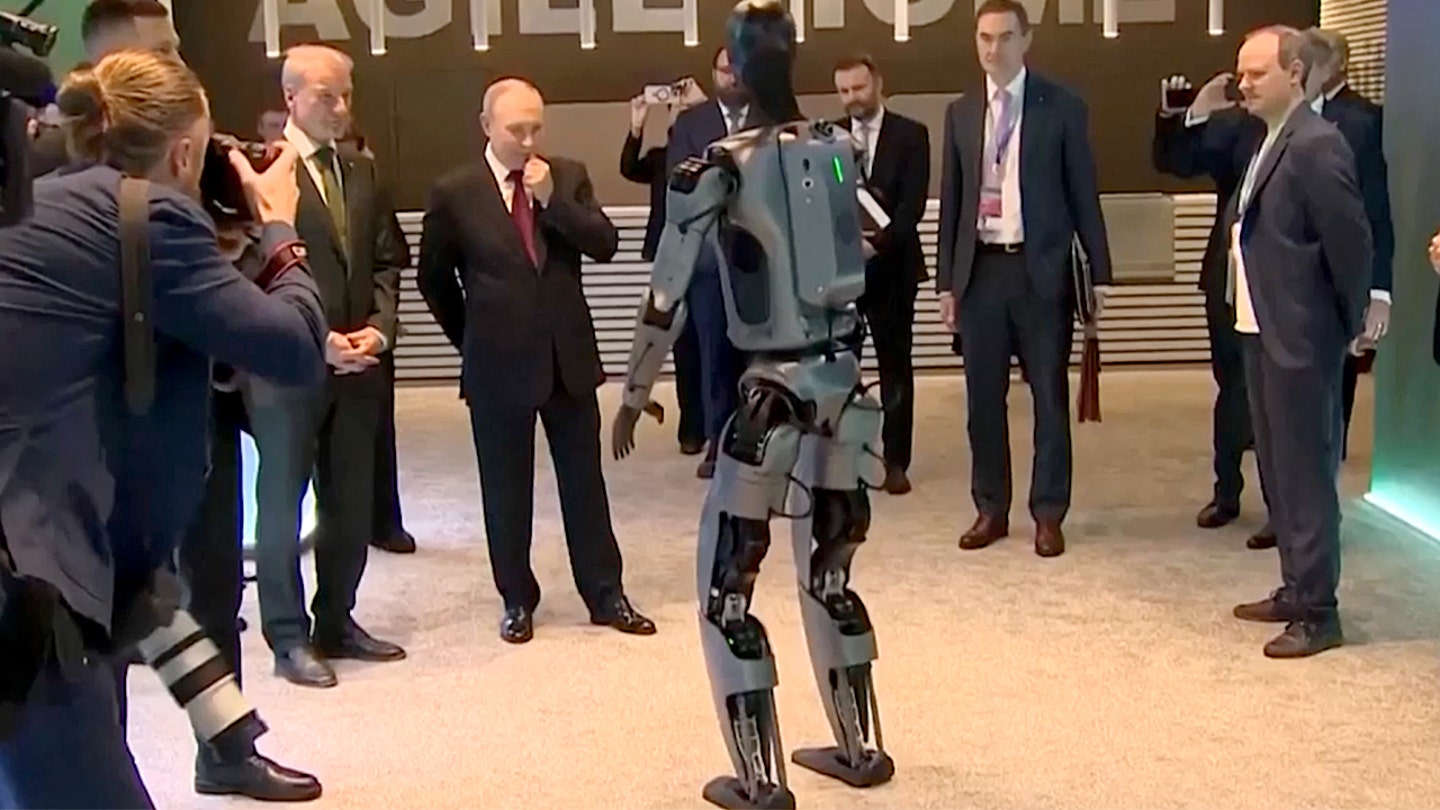 O presidente russo, Vladimir Putin, foi flagrado pela câmera com uma expressão impassível enquanto observava um robô dançar em uma exposição de IA em Moscou na quarta-feira.
