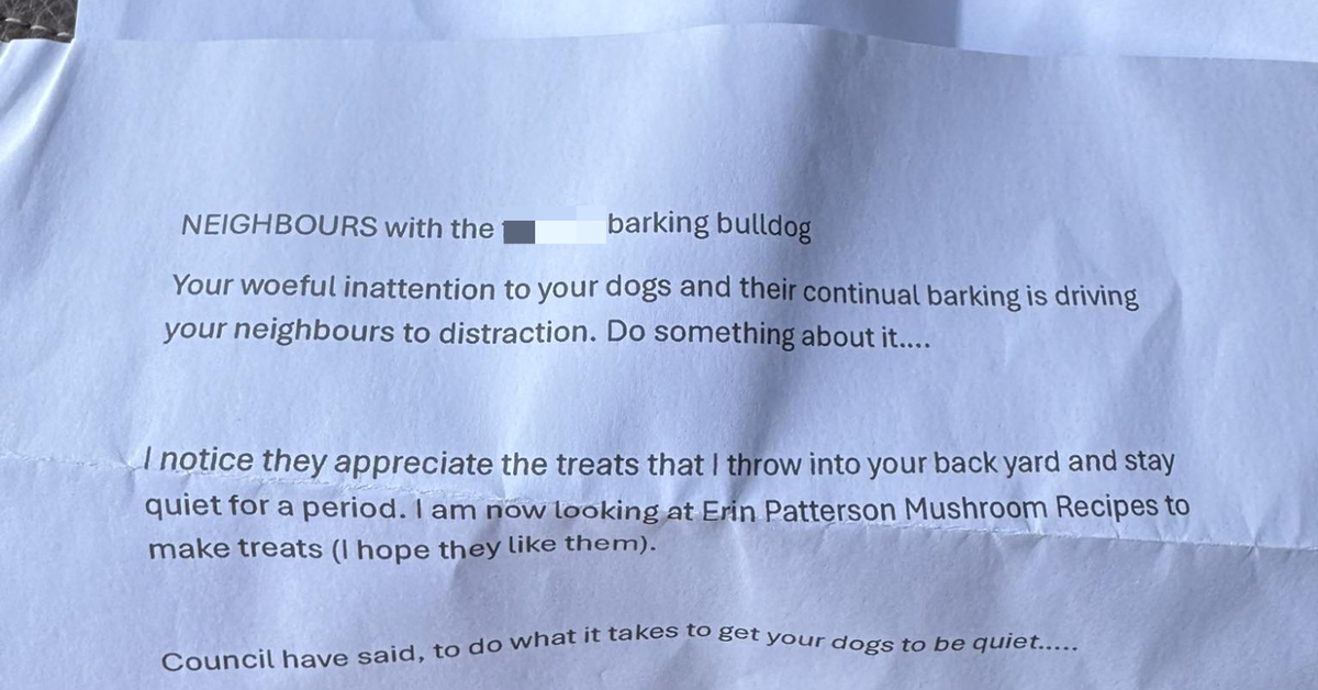 A carta terminava afirmando que o conselho disse para “fazer o que for preciso para que seus cães fiquem quietos”.