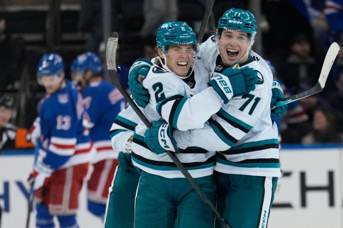 Macklin Celebrini marcou três dos primeiros quatro gols dos Sharks, enquanto Taylor Raddysh foi o primeiro a colocar o Rangers no placar antes de marcar mais dois para ajudar seu time a forçar a prorrogação e ganhar pelo menos um ponto.