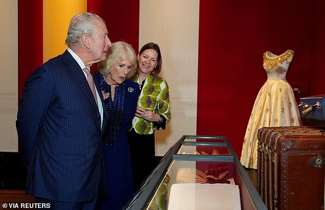 Camilla pareceu emocionada ao ver itens da infância da falecida Rainha, apontando para um par de sapatilhas de balé bem conservadas. Na Galeria Nash, ela passou a admirar o bordado do vestido de coroação da falecida Rainha, dizendo: “A habilidade é extraordinária”.