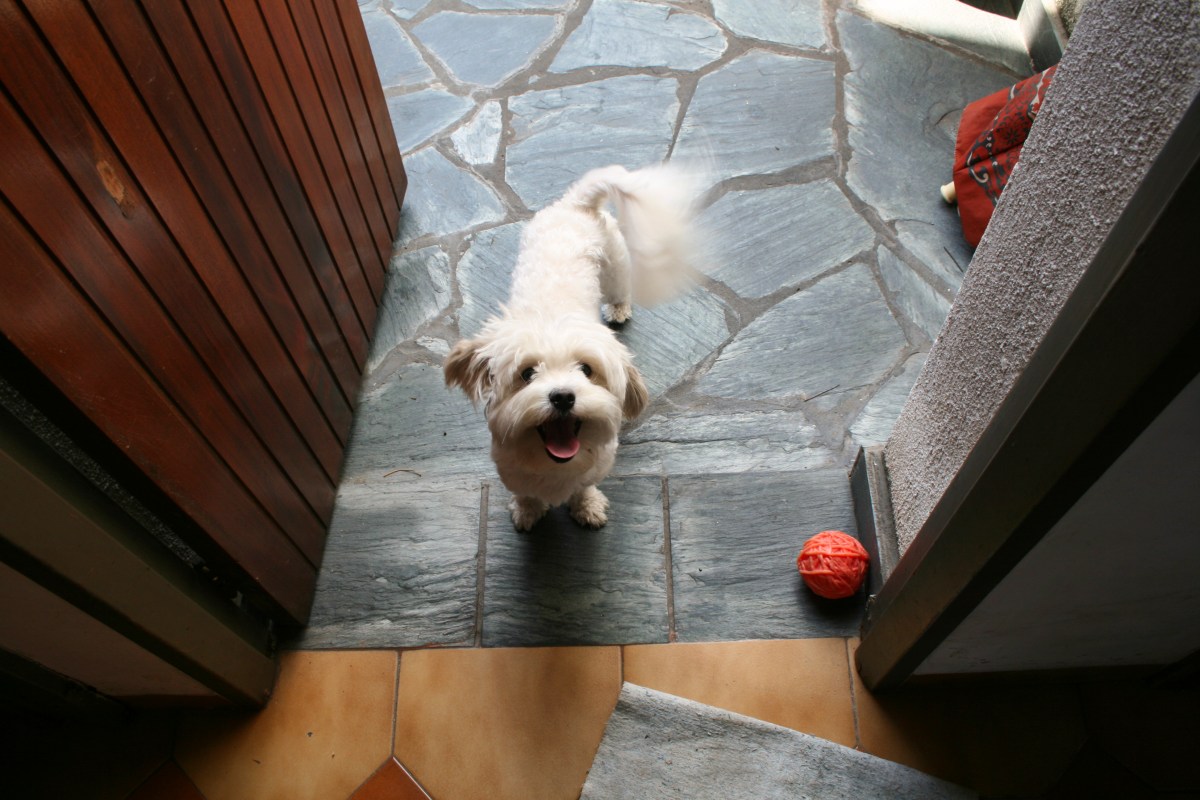 Embora à primeira vista pareça que ele foi excluído, o portão já está aberto. Em vez de simplesmente andar ao redor dele, o Shih Tzu se espreme na abertura estreita, balançando o rabo furiosamente enquanto implora para entrar.