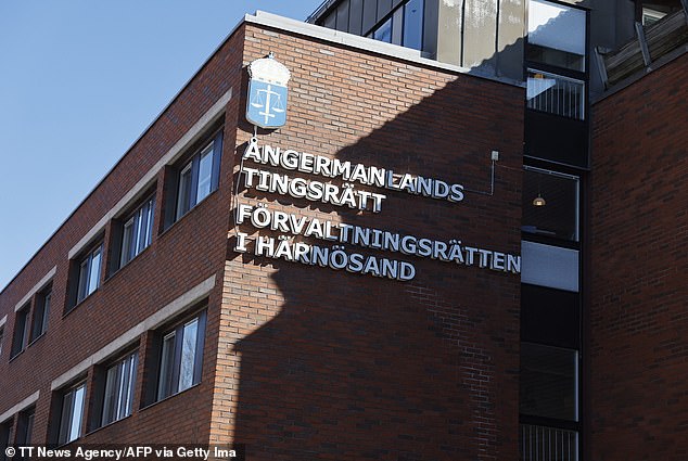 O tribunal distrital de Angermanlands é retratado antes do início de um julgamento contra um sueco suspeito de explorar sua esposa “vulnerável” para fazer sexo com vários homens mediante pagamento, em Harnosand, Suécia, em 10 de abril de 2026