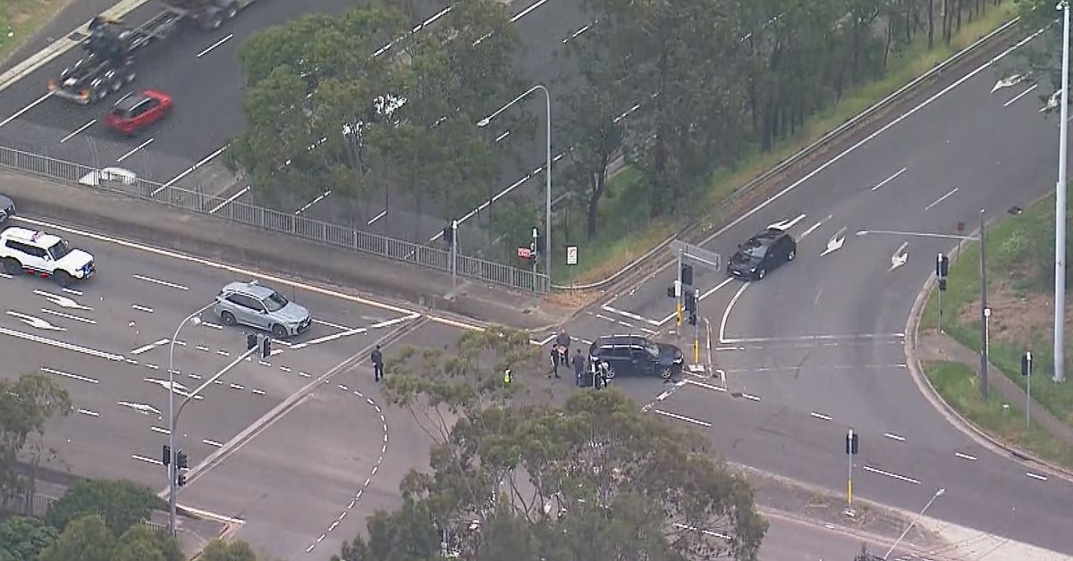 Às 16h, a polícia invadiu um sedã Mercedes em meio ao trânsito intenso na River Road, em Revesby.